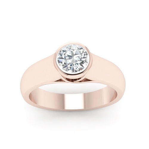 טבעת אירוסין סוליטר קלאסית, משובצת יהלום במרכז בחיתוך עגול, בשיבוץ כוס.