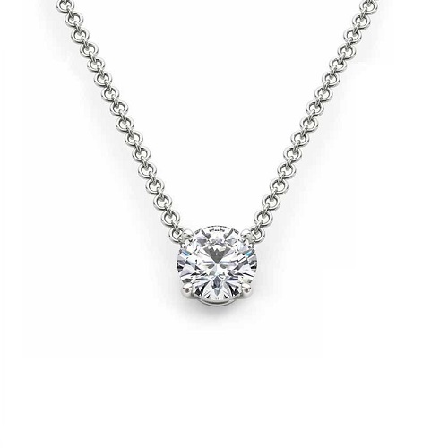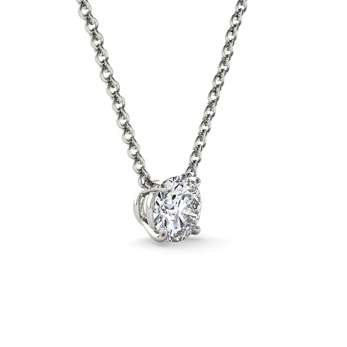 תליון סוליטר קלאסי, משובץ יהלום במרכז בחיתוך עגול, בשיבוץ ארבע שיניים,